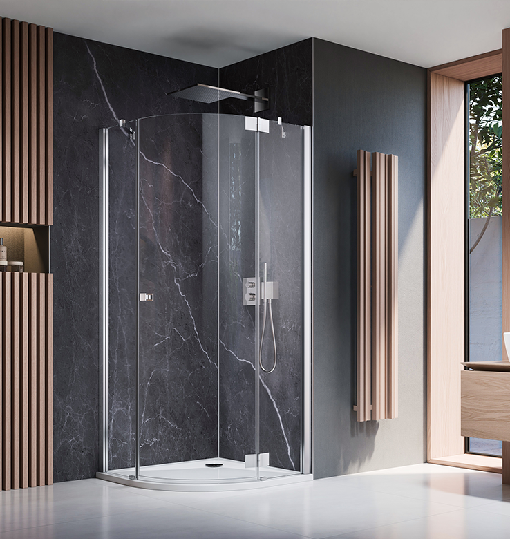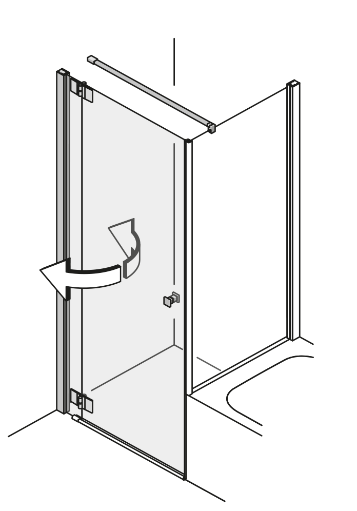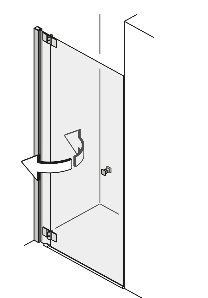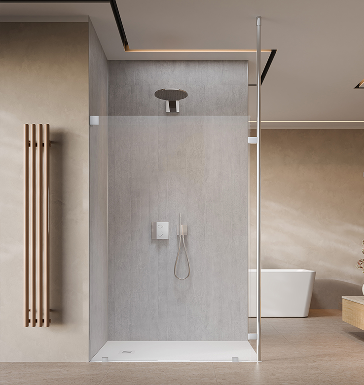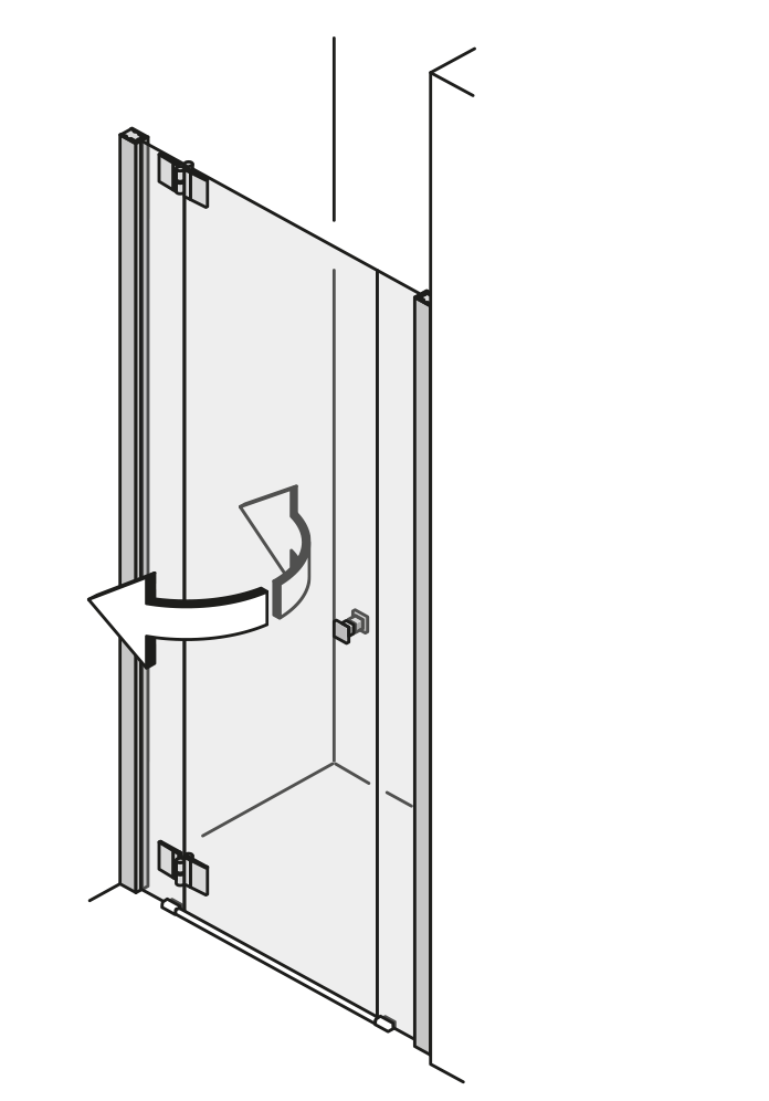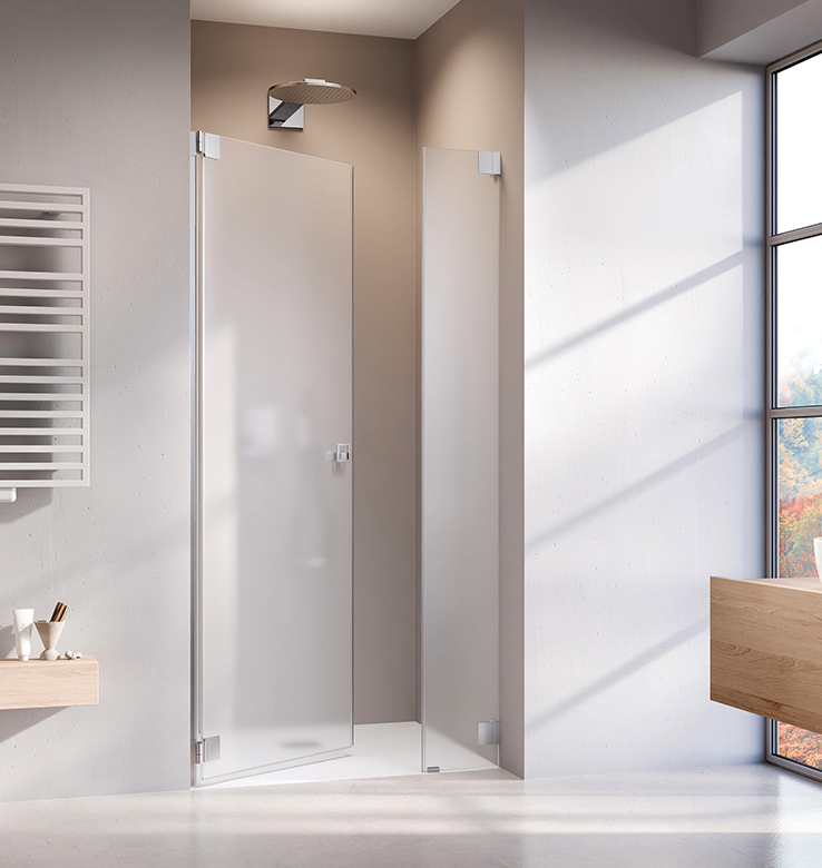 Flexibilität auf einem neuen Niveau. Das schwenkbare Glaselement lässt sich einfach nach innen oder außen drehen. So bietet es auch in kleineren Nischen einfachen Einstieg sowie breiten Spritzschutz.