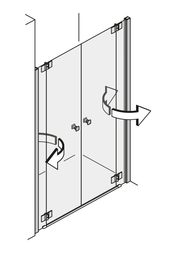 Türen öffnen bis 180 ° nach außen und 180° nach innen.