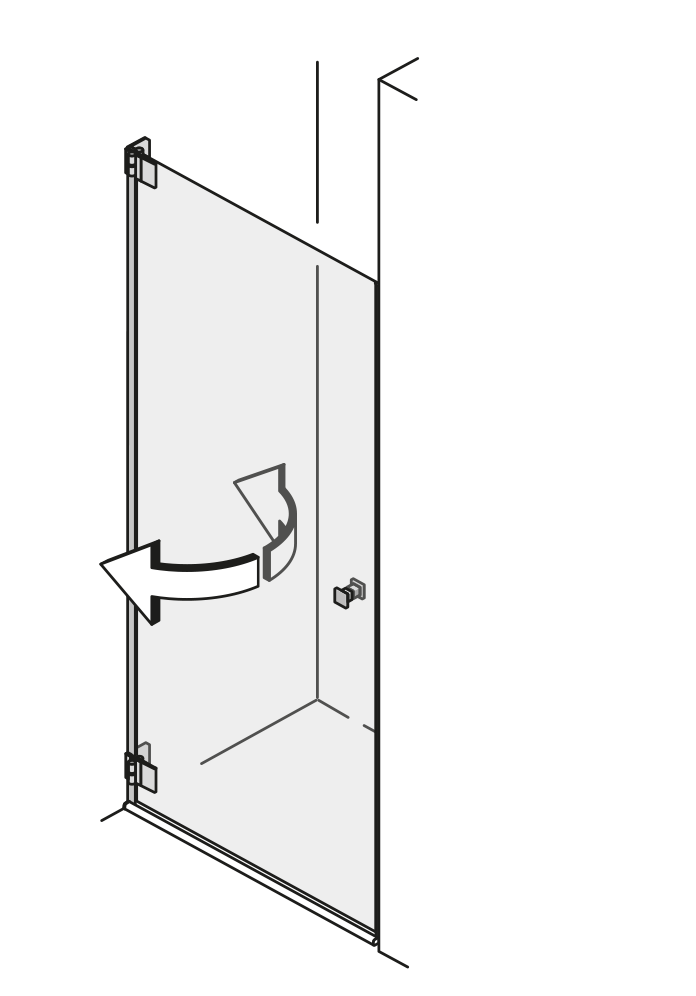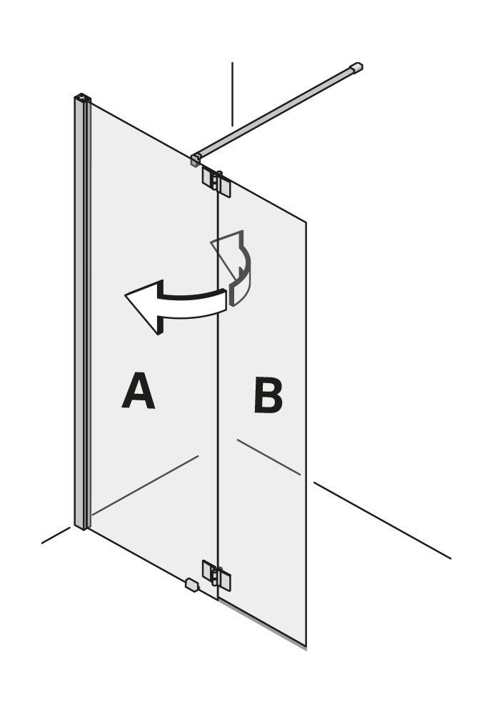 Die Wandbefestigung über zwei schmale Scharniere oder Wandwinkel ist eine besonders transparente Lösung für Ihr Bad. Das Glas verläuft nahezu nahtlos von Wand zu Wand.Maße: