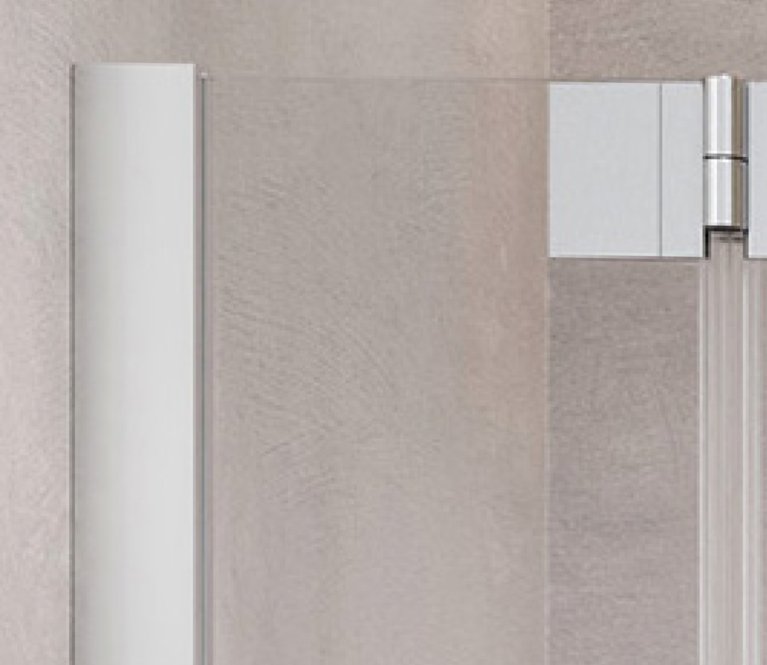 | Die Wandbefestigung über zwei schmale Scharniere oder Wandwinkel ist eine besonders transparente Lösung für Ihr Bad. Das Glas verläuft nahezu nahtlos von Wand zu Wand. |