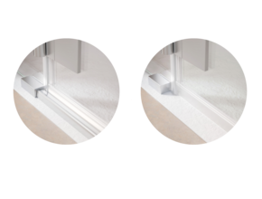 | Sie entscheiden : Für normgerechten Spritzschutz kann eine dezente, nur 12 mm hohe Schwallleiste in Türbereich gesetzt werden. Für maximale Barrierefreihit kann man auf die Montage der Schwallleiste verzichten. Eine spezielle Dichtleiste an der Tür sorgt dann für ausreichend Dichtheit. |